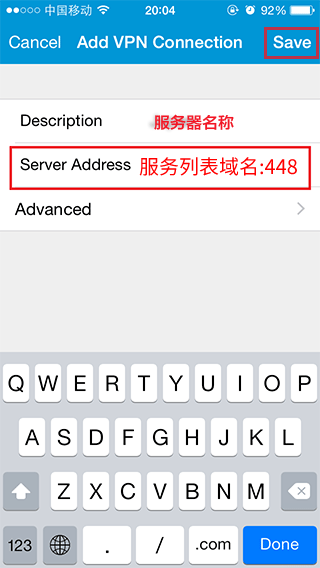 如果选择的域名连接不上,请填写列表中其他的域名进行连接,记得域名后面要有端口号 :448